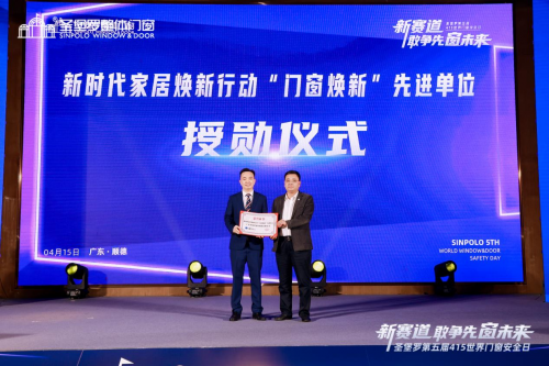 圣堡罗坚持旧窗焕新的决心和坚持,以及民族企业的使命与担当为消费者打造美好门窗生活的同时,也推动了门窗各项标准的建立,以及促进门窗品质的提升。为表彰圣堡罗整体门窗在门窗焕新行动中所起到的积极作用,全联家具装饰业商会秘书长张仁江为圣堡罗颁发《新时代家居焕新行动“门窗焕新”先进单位》,圣堡罗家居集团董事长上台领奖。