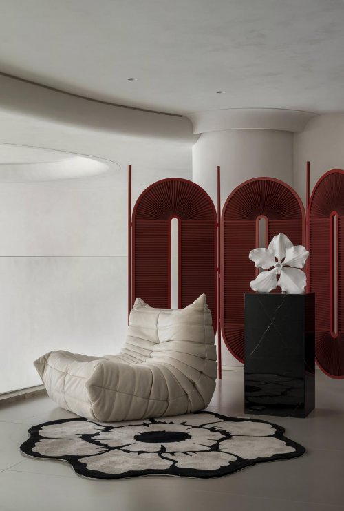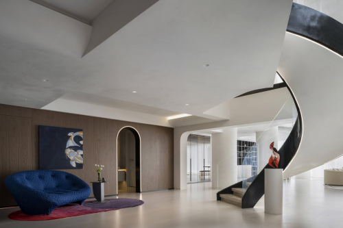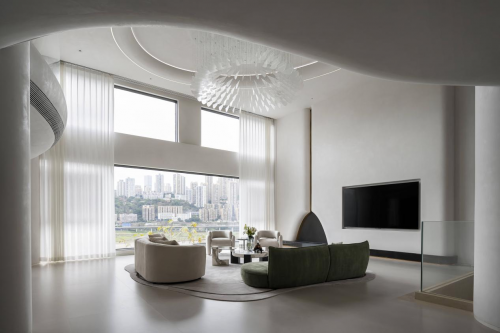 回归于居室的内核,我们以“雕塑空间”为设计主题,将原始梁柱骨架融入装饰形体,焕发出具有张力和感染力的灵动空间,墙、顶、地之间再无阻隔,浑然一体。
