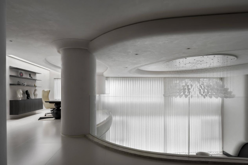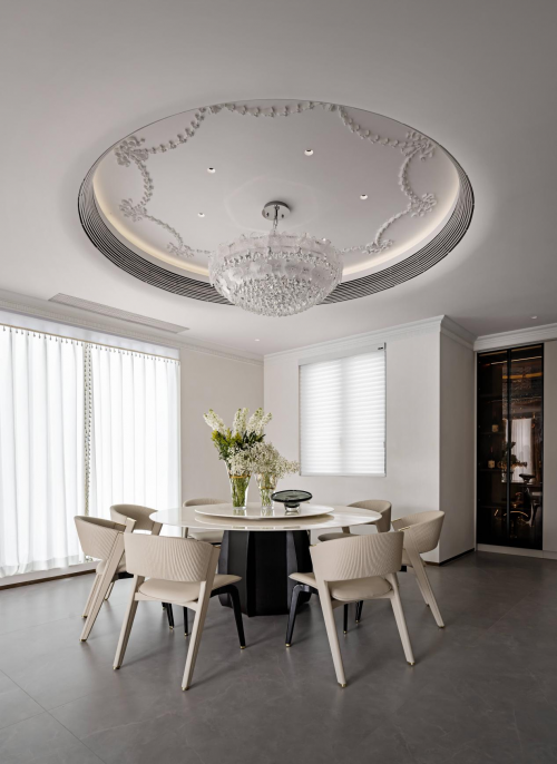 在色彩搭配上,热烈激昂的暖色与理智高远的冷色点缀其中,张弛有度,收束交织。精巧的水晶吊灯在光影交错中折射出璀璨光芒,每一件家具艺术品都经过打磨推敲,力求每一个细节都能传达出细腻入微的质感。