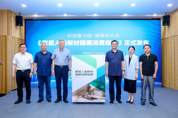 2025年7月2日,由中国林产工业协会主办,以"标准看中国,健康向未来"为主题的《家居人造板材健康消费指南》(以下简称《指南》)发布会在北京举行。中国林产工业协会会长周鸿升,全国人大代表、中国环保产业协会副会长、万华生态集团董事长郭兴田,中国工程设计大师、中国林产工业协会首席专家肖小兵,中国消费者报消费研究部主任谭笑,国家林草局产业发展规划院教授级高工张忠涛,国家人造板与木竹制品质量检验检测中心主任付跃进等嘉宾出席了本次发布会,共同见证这一行业重要时刻。这份《指南》的发布,旨在普及专业知识、提供科学指导,促进健康消费,为消费者提供科学实用的消费指南。