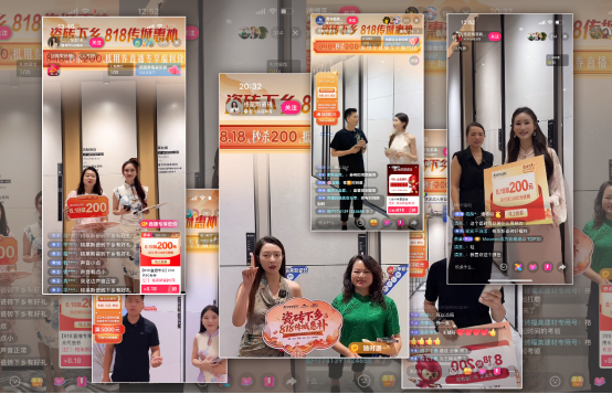 2025年,品牌推出“瓷砖下乡 818传城惠补”专项行动,针对下沉市场精准推出 “香云纱原生系列”、“莱姆石系列”与多规格子母砖等多组高适配性产品套餐及专属补贴,通过内容共创与门店陪跑,实现曝光4880万+、总互动量达23万+,订单完成率118%的卓越战绩。