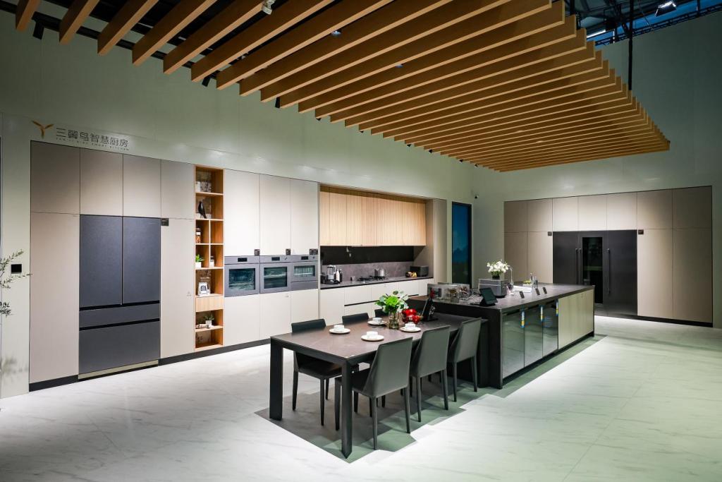 在三翼鸟 AWE 2024 的展馆中,我们就体验了其搭建的智慧厨房、智慧客厅等智能空间。说实话,我们多年来持续关注智能家居产业,体验过许多品牌的展台展馆、走访过不少品牌的门店展厅,使用过许多智能家居和智能家电产品系统。三翼鸟 AWE 2024 展馆给我最大的印象是,三翼鸟在家电与家居的融合上确实做到了 " 无缝 ",不论是智能体验上的互联协作,抑或是外观尺寸上的风格统一,均表明三翼鸟确实善于 " 缝合 " 家电与家居的边界,让二者合二为一。