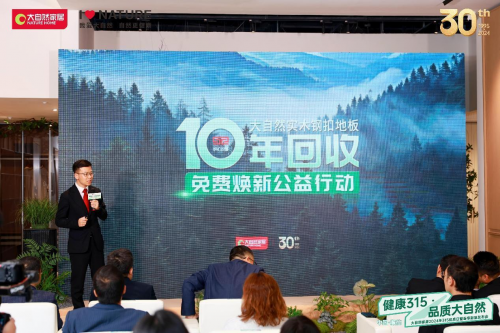 发布会上,大自然家居宣布推出“大自然实木钢扣地板十年回收免费焕新”公益活动,旨在倡导绿色环保生活理念,并为消费者提供更加贴心的售后服务。